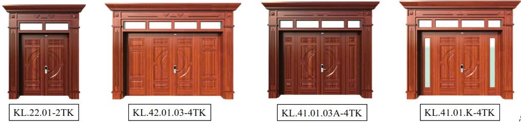 3.3 Báo giá thi công cửa thép vân gỗ 2025 cho cửa 4 cánh làm phào Luxury ( KL-41/42)